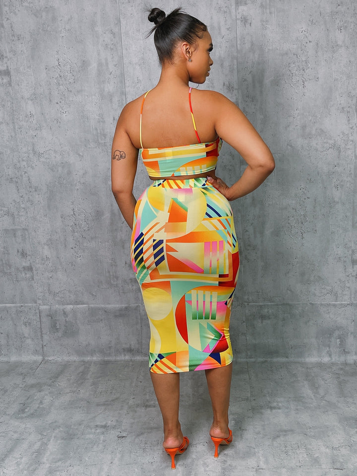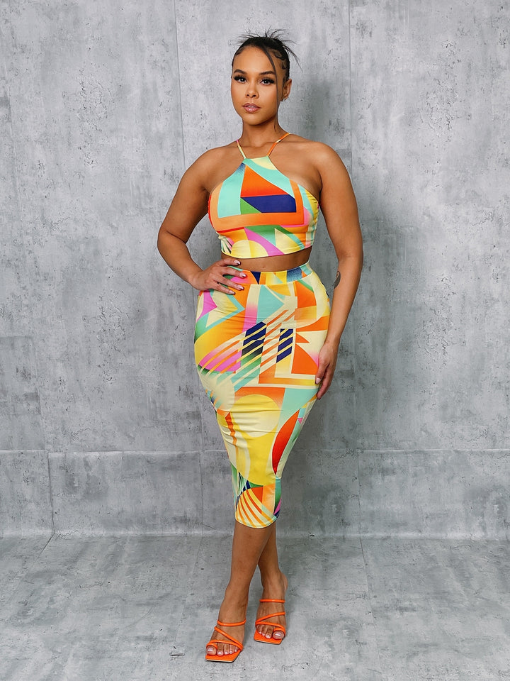Sleeveless crop top and skirt